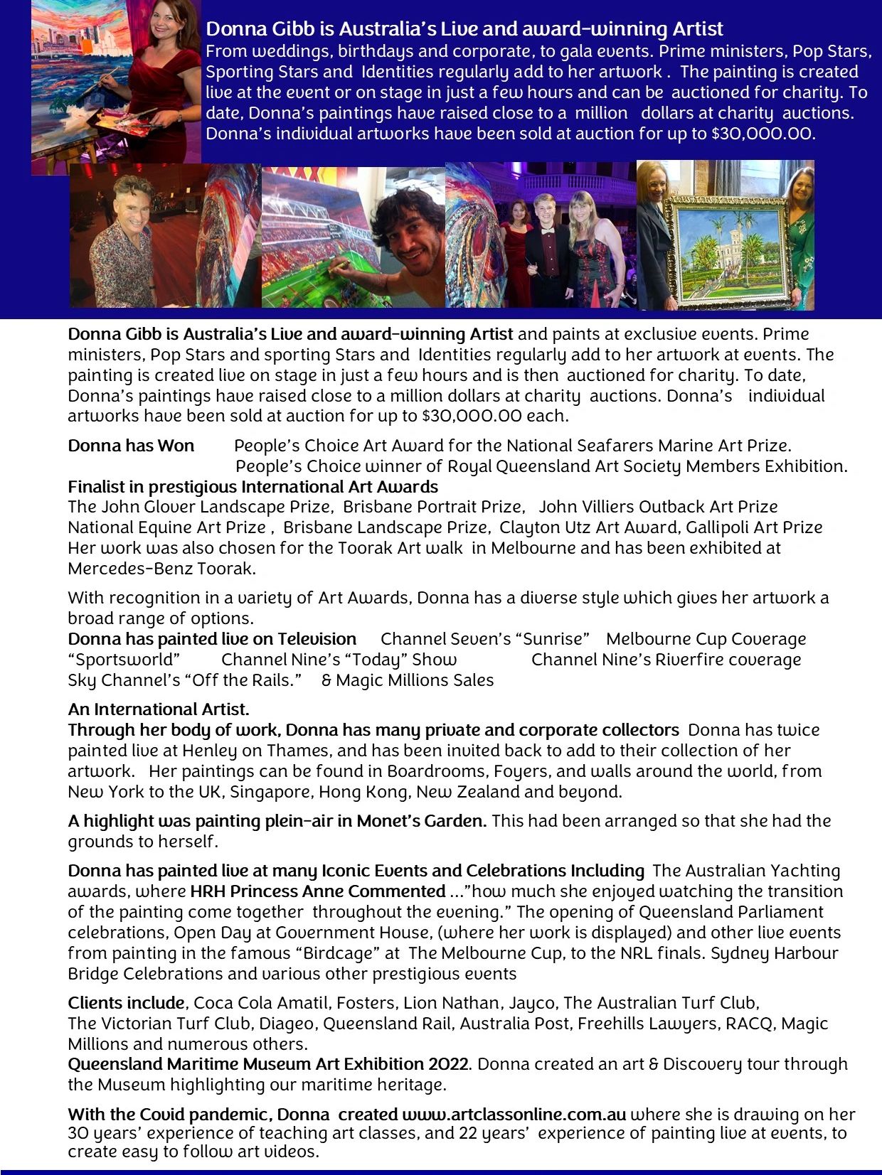 Click on a file to download Donna Gibb artist information on Live artist painting and corporate artwork.