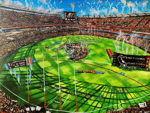 I have painted live at events in Melbourne for Collingwood about a decade ago, and have a soft spot for this team and was compelled to paint this artwork.