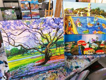 Gifts from $16. Unique and original designs now available. Coffee Cups, Framed & Stretched canvas prints, Jigsaw puzzles, coasters, placemats, miniatures with easels, block prints and more. You can also buy an original artwork! Available now for delivery or pick up from my Brisbane Studio. All with my original artwork